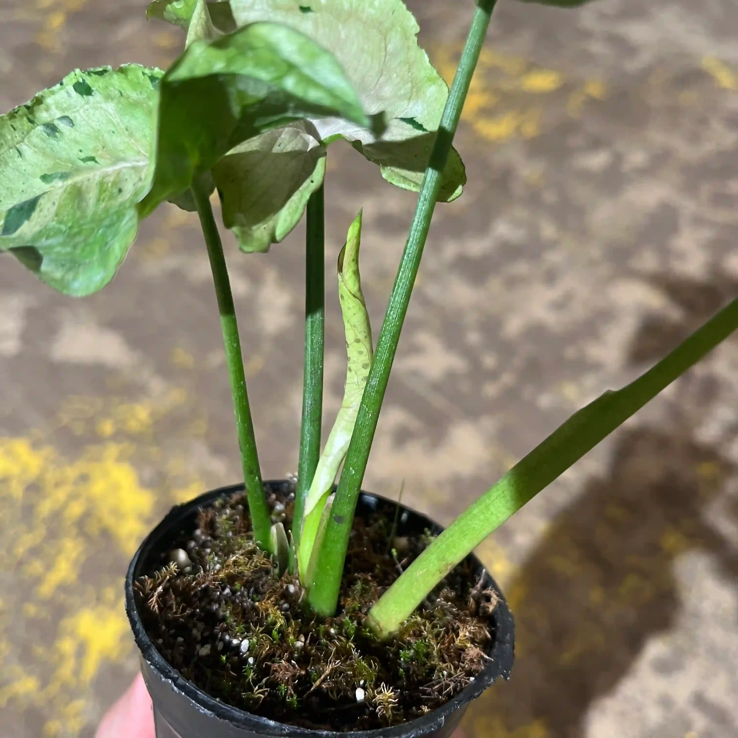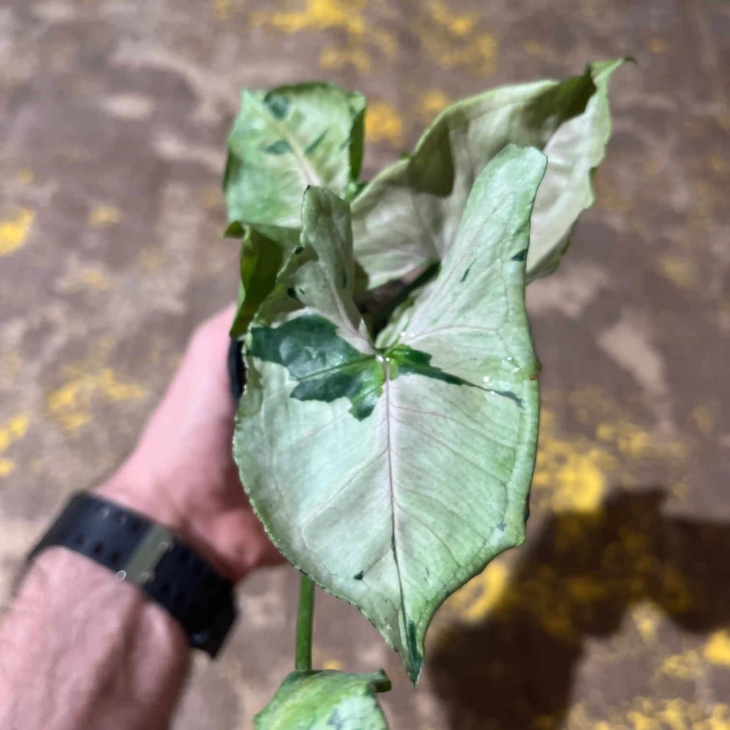 سینگونیوم گرین اسپلش یک گیاه آپارتمانی زیبا با برگهای قلبی شکل است که در رنگ سبز روشن همراه با لکههای سفید یا سبز روشن روی برگها دیده میشود. این لکهها به صورت پراکنده و طبیعی روی برگها ظاهر میشوند و به گیاه جلوهای خاص و متفاوت میبخشند. برگها معمولاً نرم و لطیف هستند و ساقههای آن به صورت رونده رشد میکنند که میتوانند روی گلدان یا در حالت آویز نیز رشد کنند. این گیاه به دلیل زیبایی ظاهری و تطابق پذیری با محیط داخلی، محبوبیت زیادی دارد.